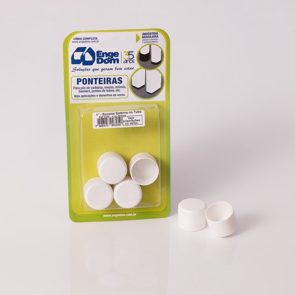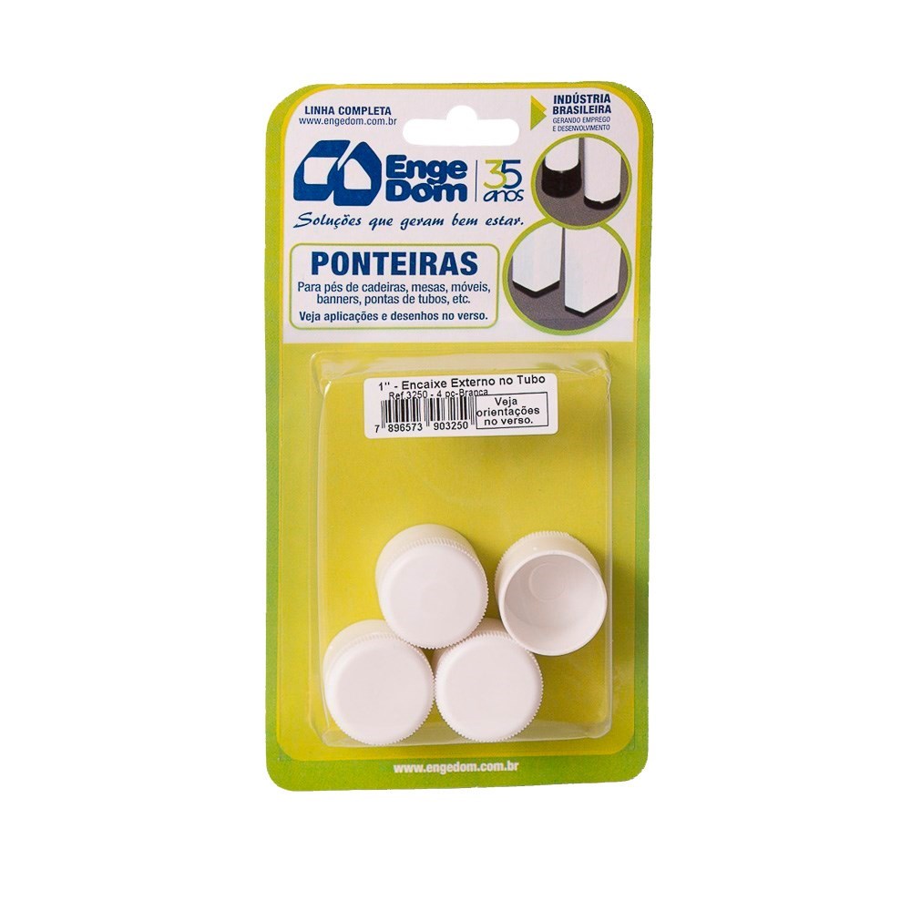 Ponteira Cadeira Engedom - "Pe" Externo Branca (E) 1" 4 Peças Redondo - 3250