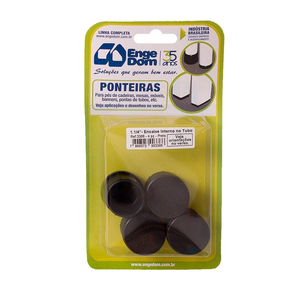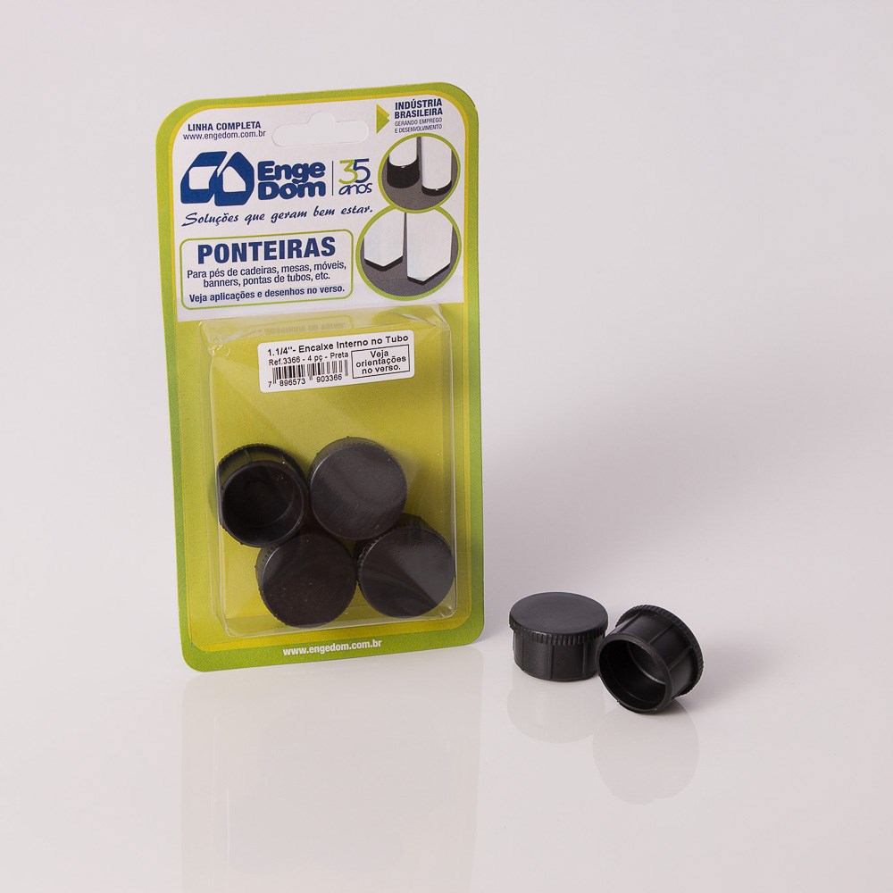Ponteira Cadeira Engedom - "Pe" Interno Preta (F) 1.1/4" 4 Peças Redondo - 3366