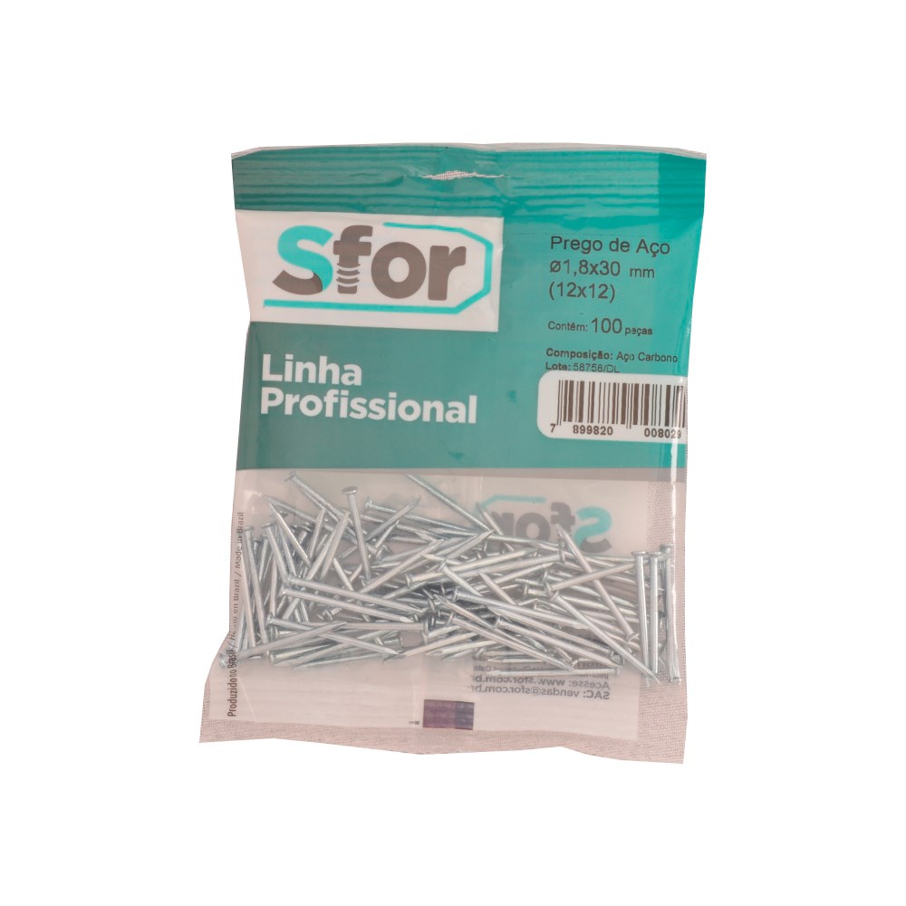 Prego Aço Sforplast com Cabeça 12X12 (1.8x30mm) c/100 Peças | 4430