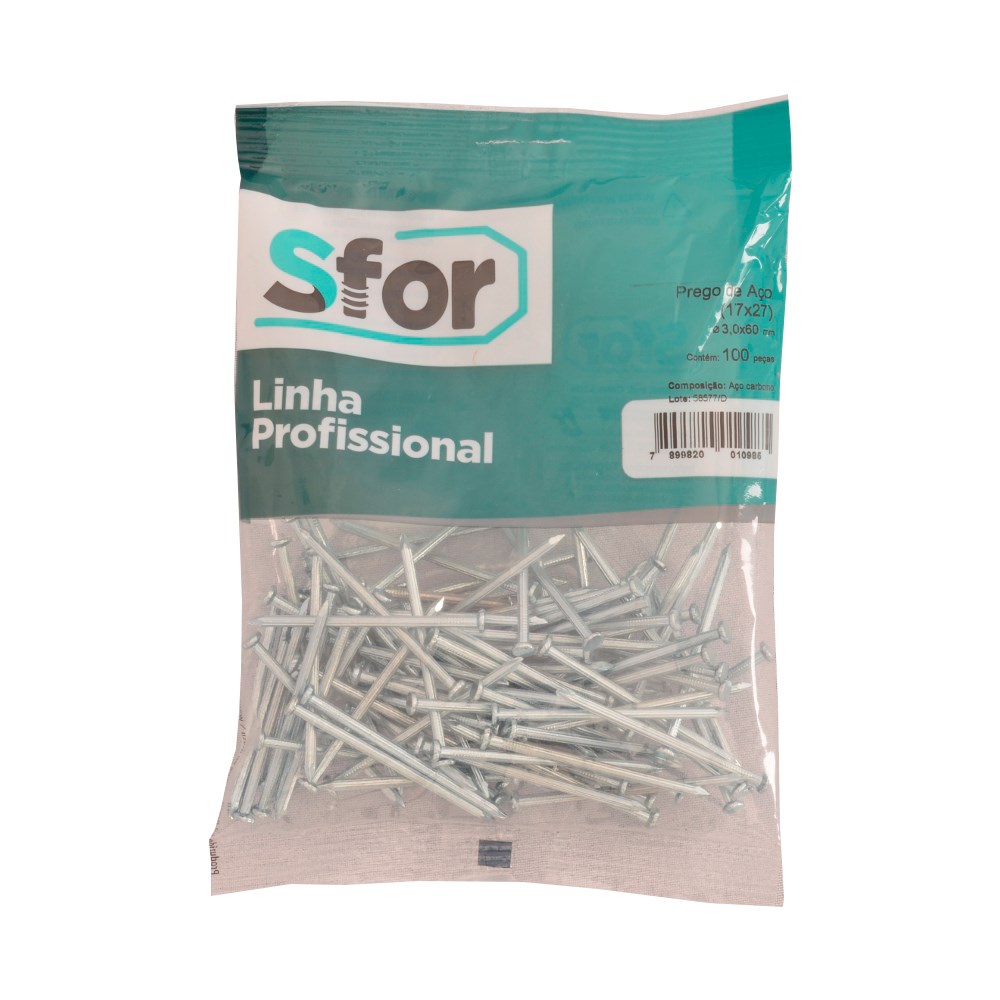 Prego Aço Sforplast com Cabeça 17X27 (3.8x60mm) c/100 Peças | 4952