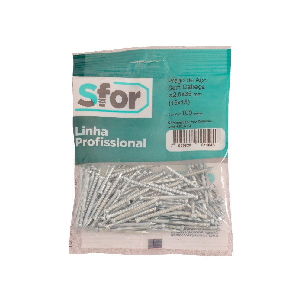 Prego Aço Sforplast sem Cabeça 15X15 (2.5x35mm) c/100 Peças | 4958