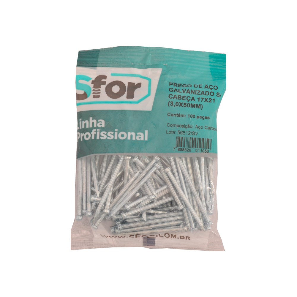 Prego Aço Sforplast sem Cabeça 17X21 (3.0x50mm) c/100 Peças | 4959
