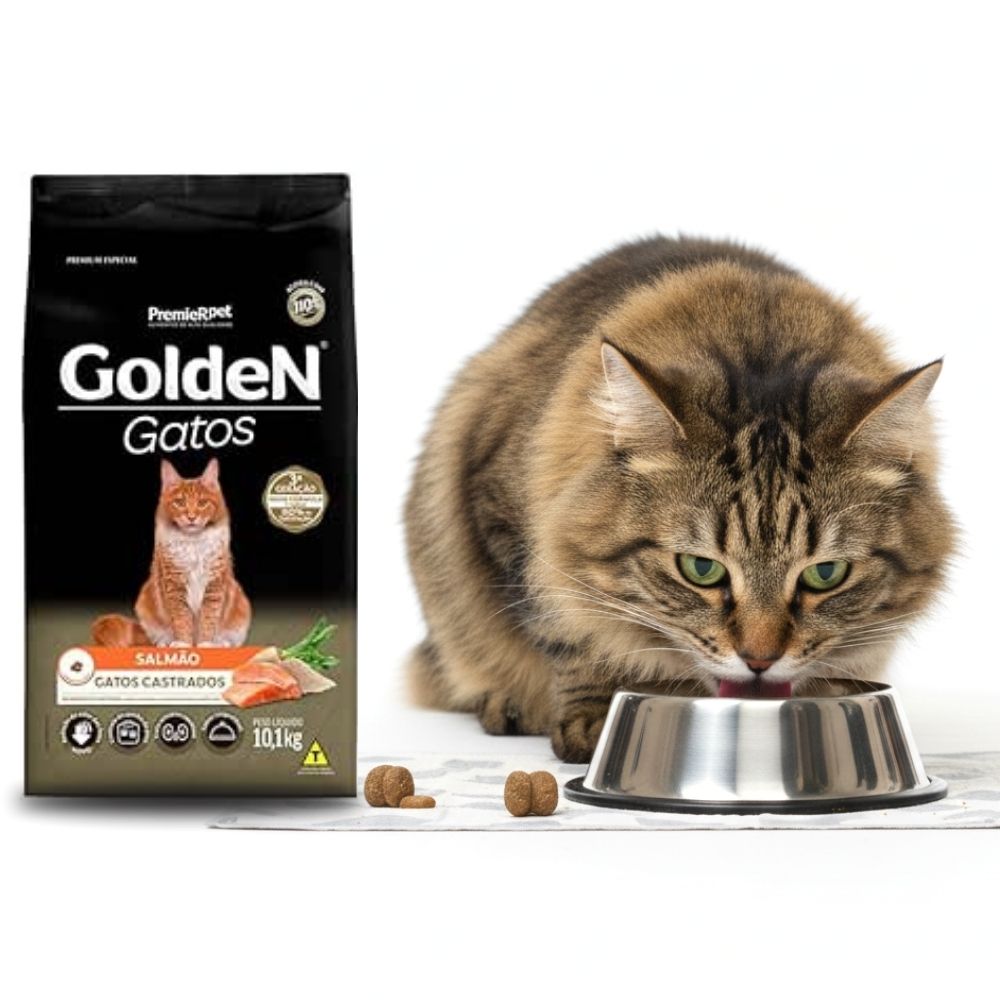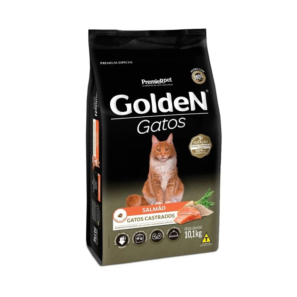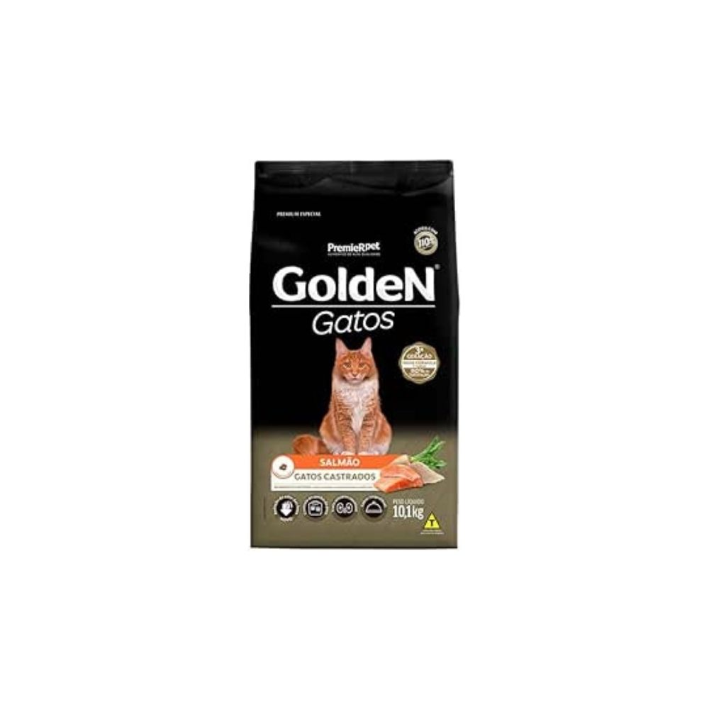 Ração Golden Gatos Castrados Sabor Salmão - 10,1 Kg