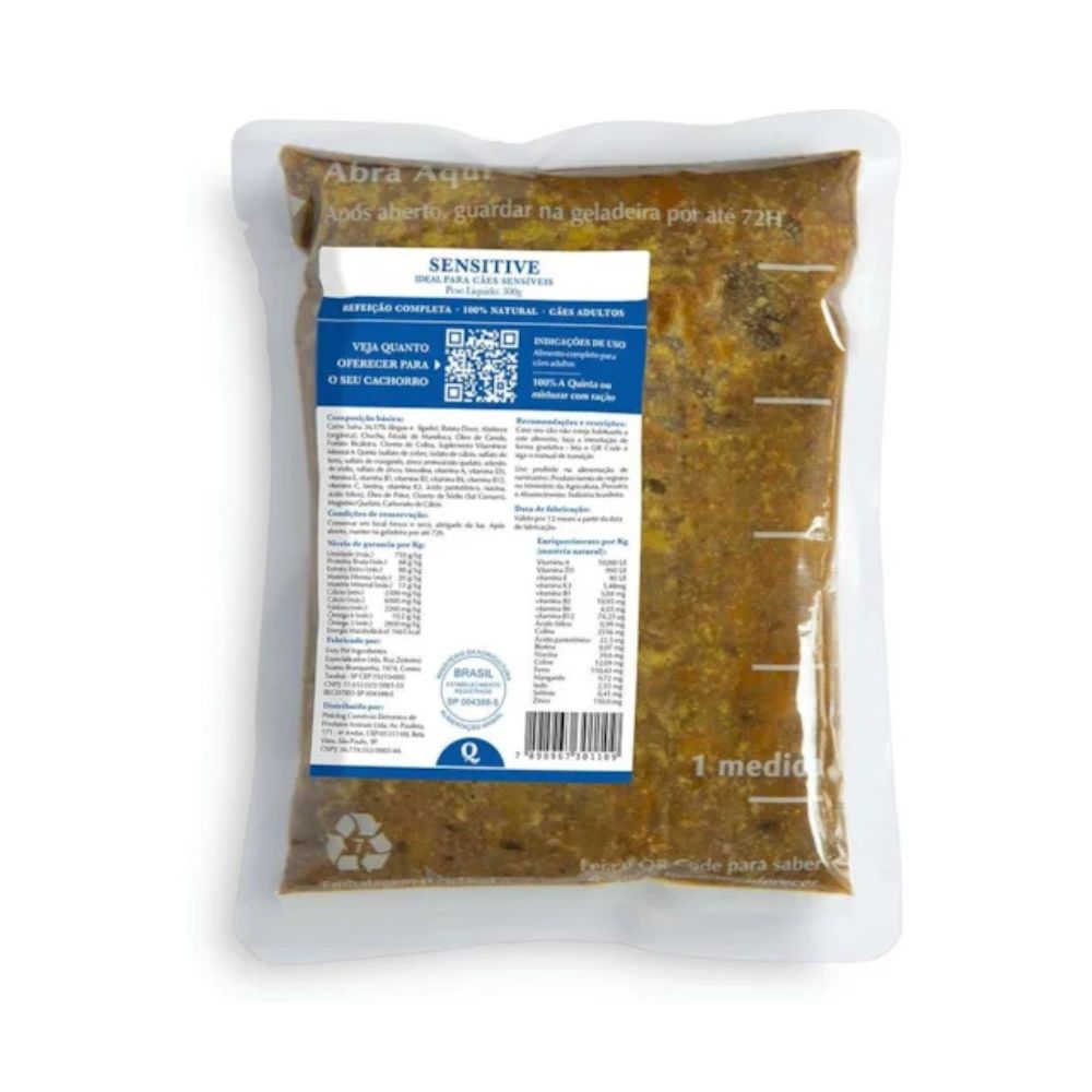 A Ração Úmida A Quinta Sensitive para Cães Sensíveis 300g foi desenvolvida especialmente para cães com sensibilidades digestivas ou alimentares, oferecendo uma refeição completa, natural e altamente digestível. Com ingredientes selecionados e fórmula suave, auxilia na saúde intestinal, garante melhor assimilação dos nutrientes e proporciona sabor irresistível até para os cães mais seletivos. Ideal para uso diário, promove bem-estar, conforto e alimentação equilibrada.