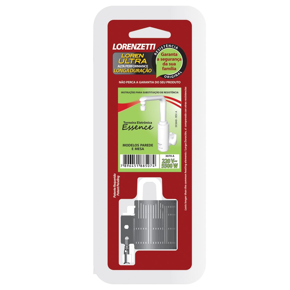 A Resistência Lorenzetti Torneira Essence é um componente de alta qualidade e durabilidade, projetado para garantir o perfeito funcionamento da sua torneira elétrica. Com potência de 5500W e compatibilidade com tensão de 220V, essa resistência é ideal para uso em torneiras de parede e mesa do modelo 3070A.