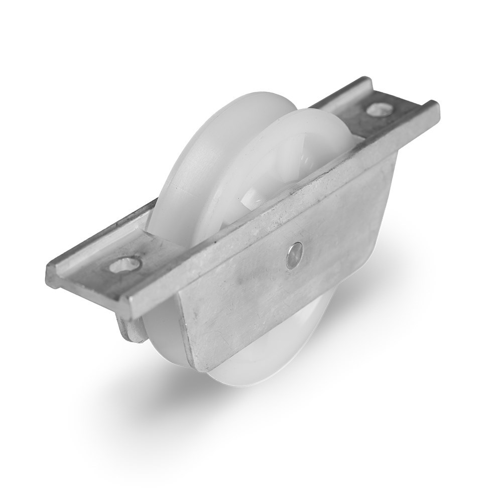 Roldana Nylon Jocec - "V" com Suporte Aberto em Alumínio 75mm - A10102