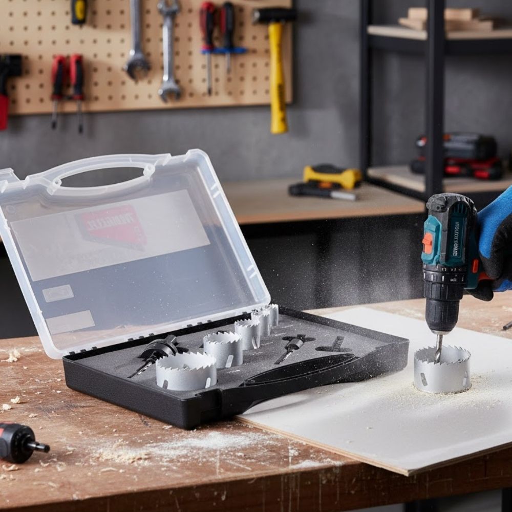 1. Conjunto com 6 peças de serra copo de aço rápido.