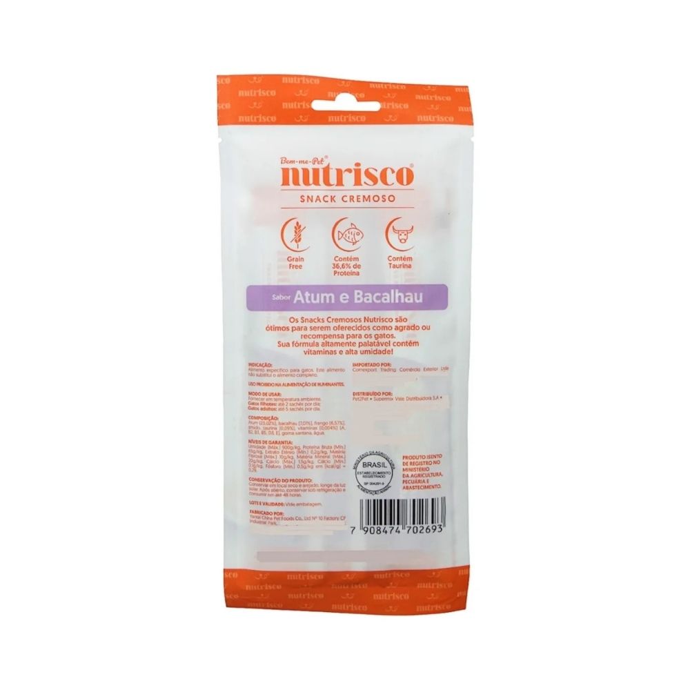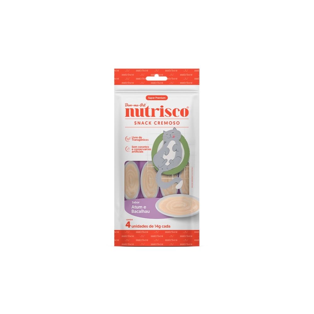 Garanta já o Snack Cremoso Nutrisco Atum e Bacalhau e ofereça ao seu gato uma experiência cremosa, deliciosa e nutritiva!