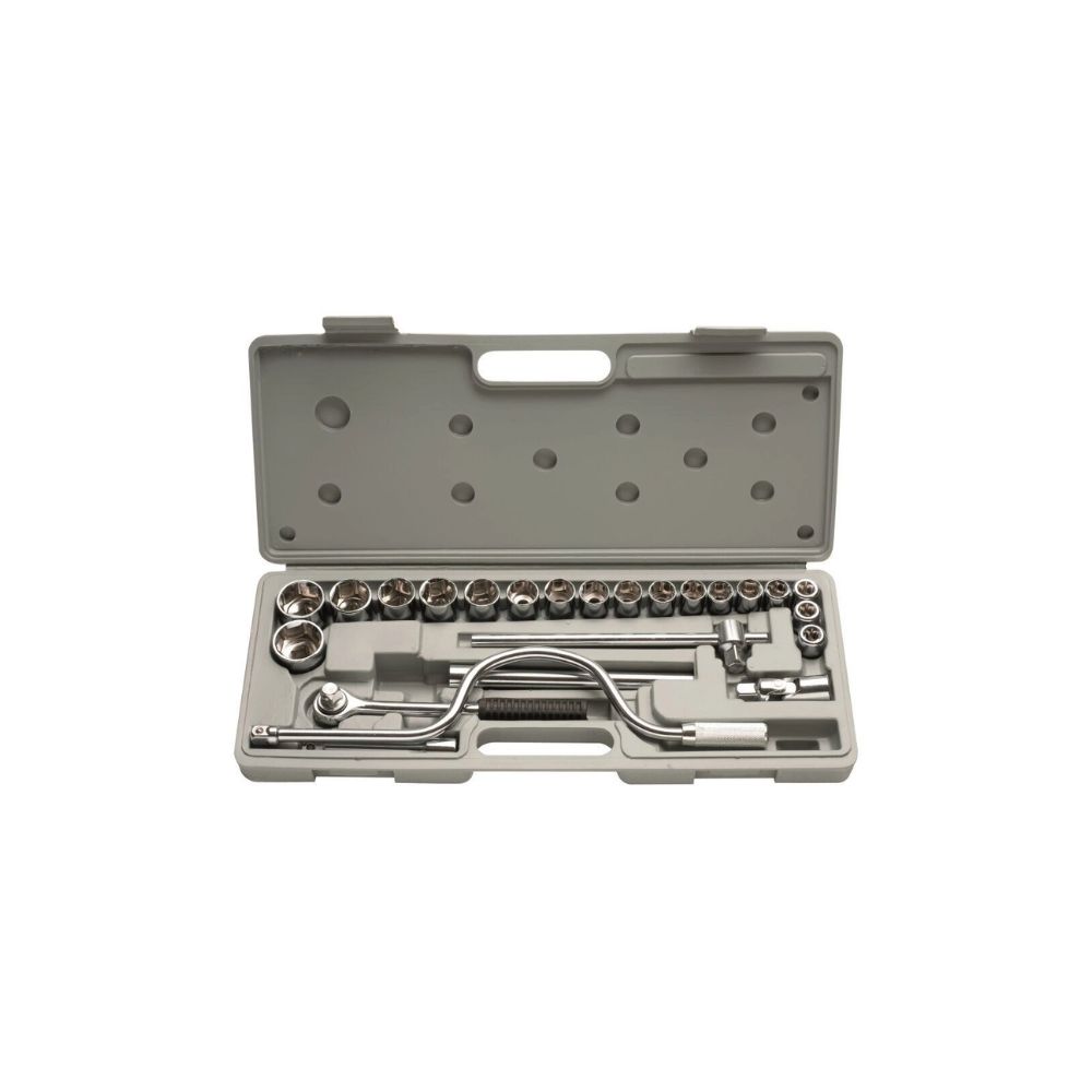 - Conjunto completo com 24 peças, incluindo soquetes, bits e catraca