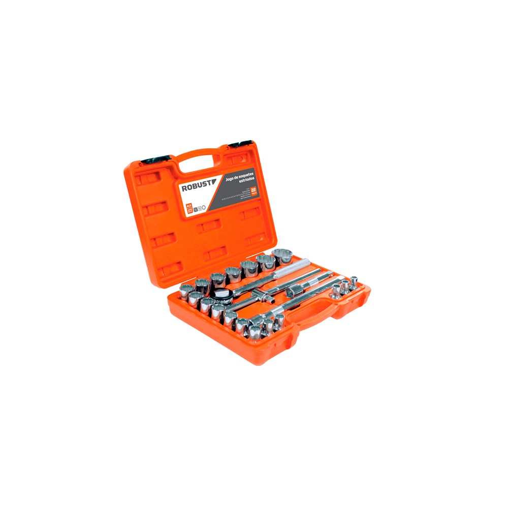 Soquete Robust Soli - D26EM "MM" Sem Manivela Estriado 22 Peças - 60230