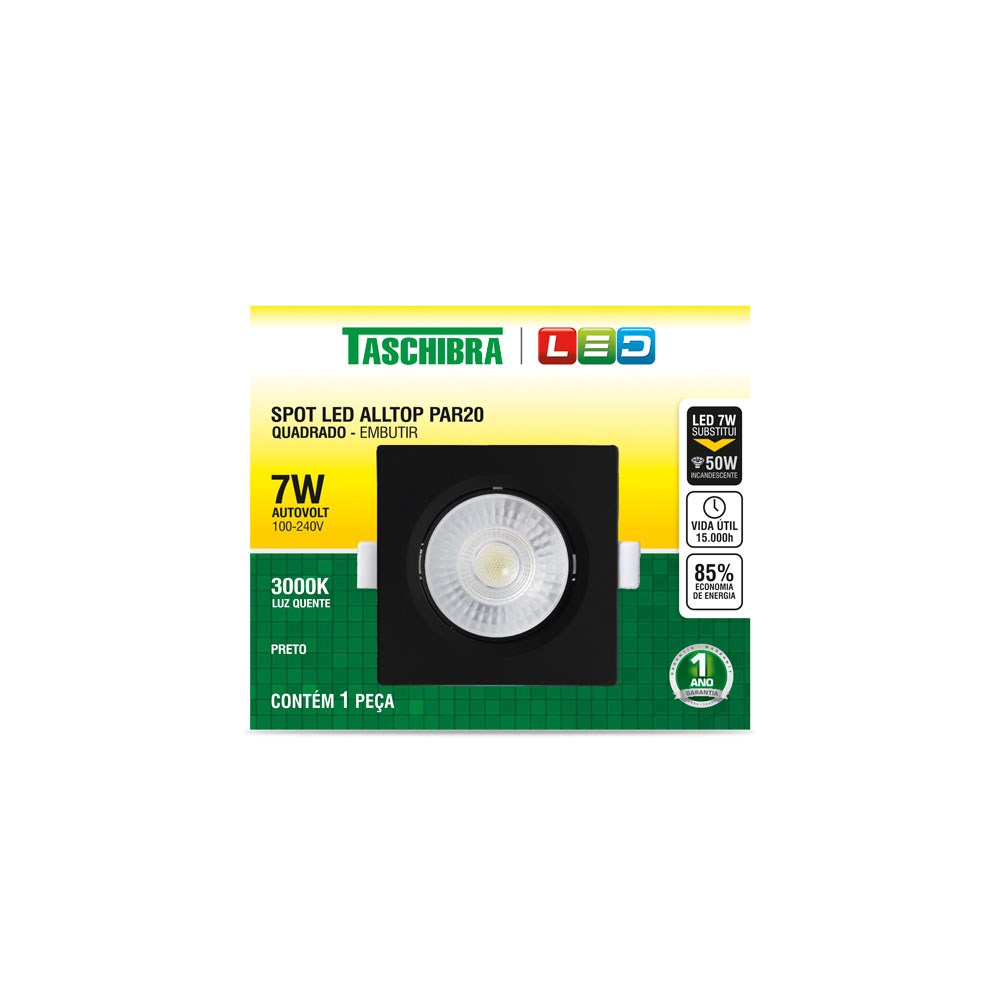 Spot LED 7W Alltop Embuti PAR20 3000k Taschibra | 15090333