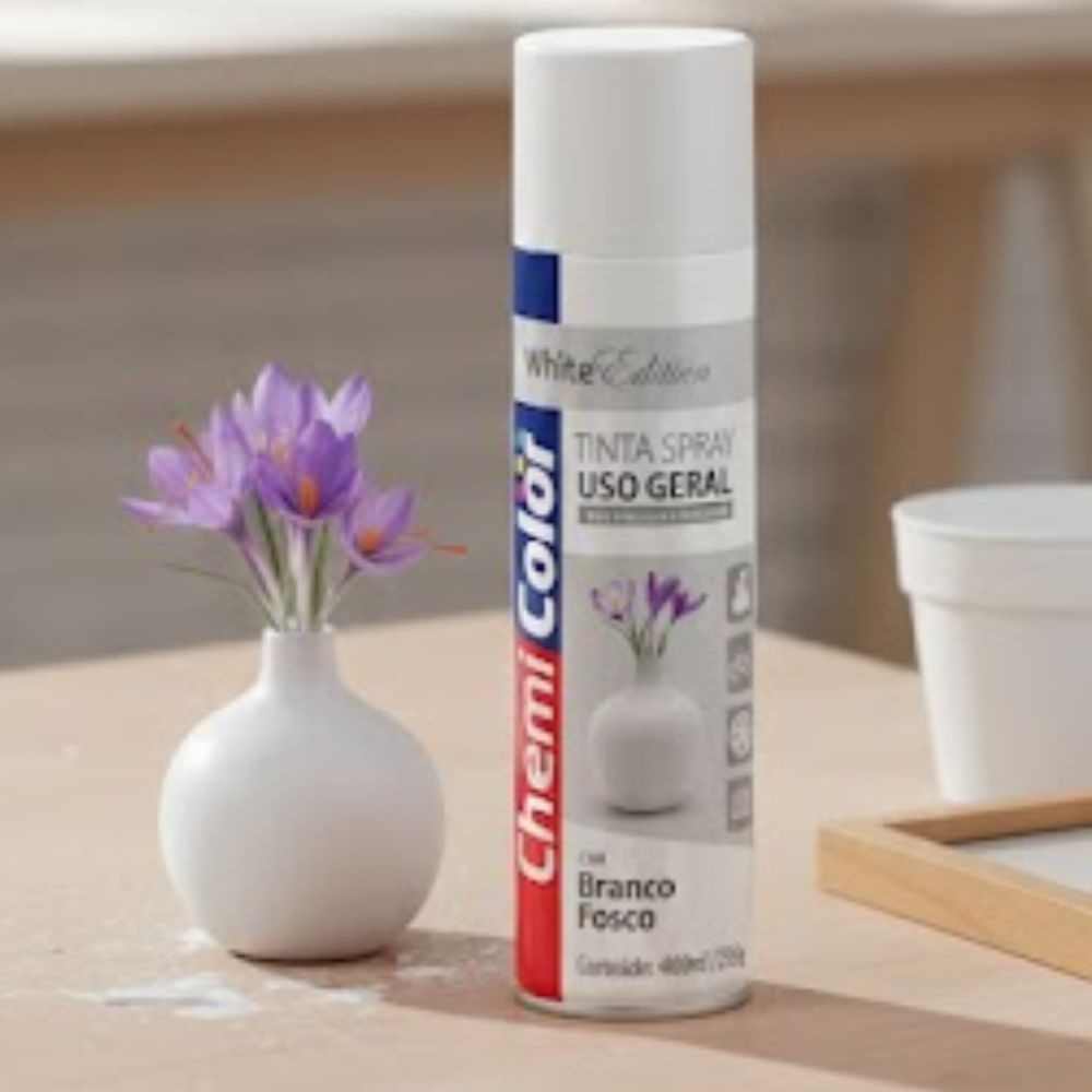 O Spray Chemicolor na cor Branco Fosco é a escolha perfeita para quem busca qualidade, praticidade e um acabamento impecável em seus projetos. Adquira já o seu e transforme seus objetos e ambientes com facilidade e estilo!