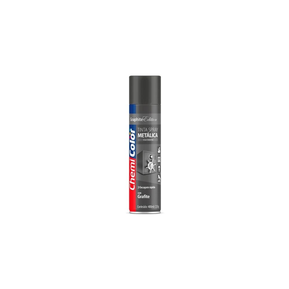 O Spray Chemicolor Metálico Grafite é a escolha perfeita para quem busca um resultado profissional e duradouro em projetos que envolvam superfícies metálicas. Adquira já o seu e transforme seus trabalhos com um acabamento metálico de alta qualidade.