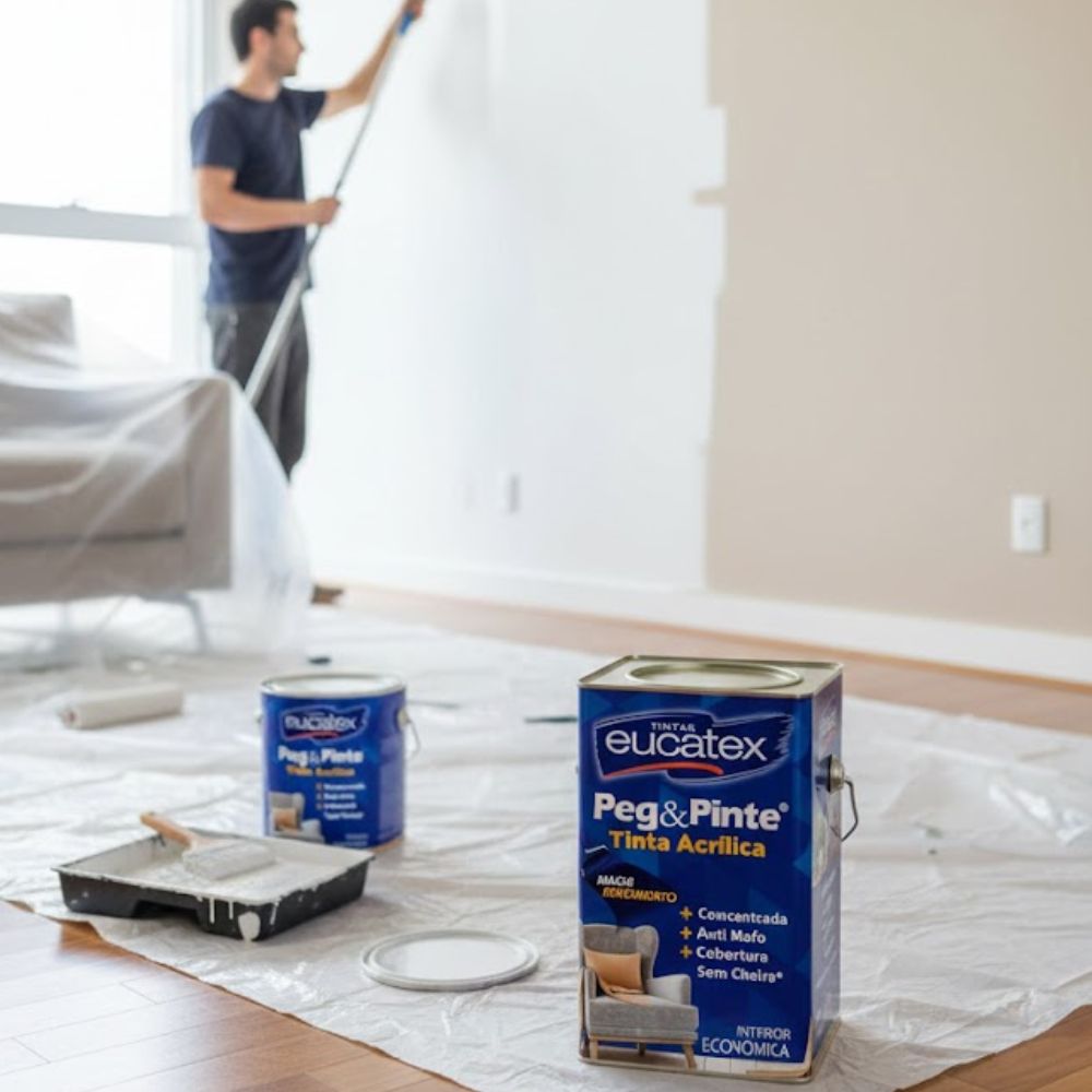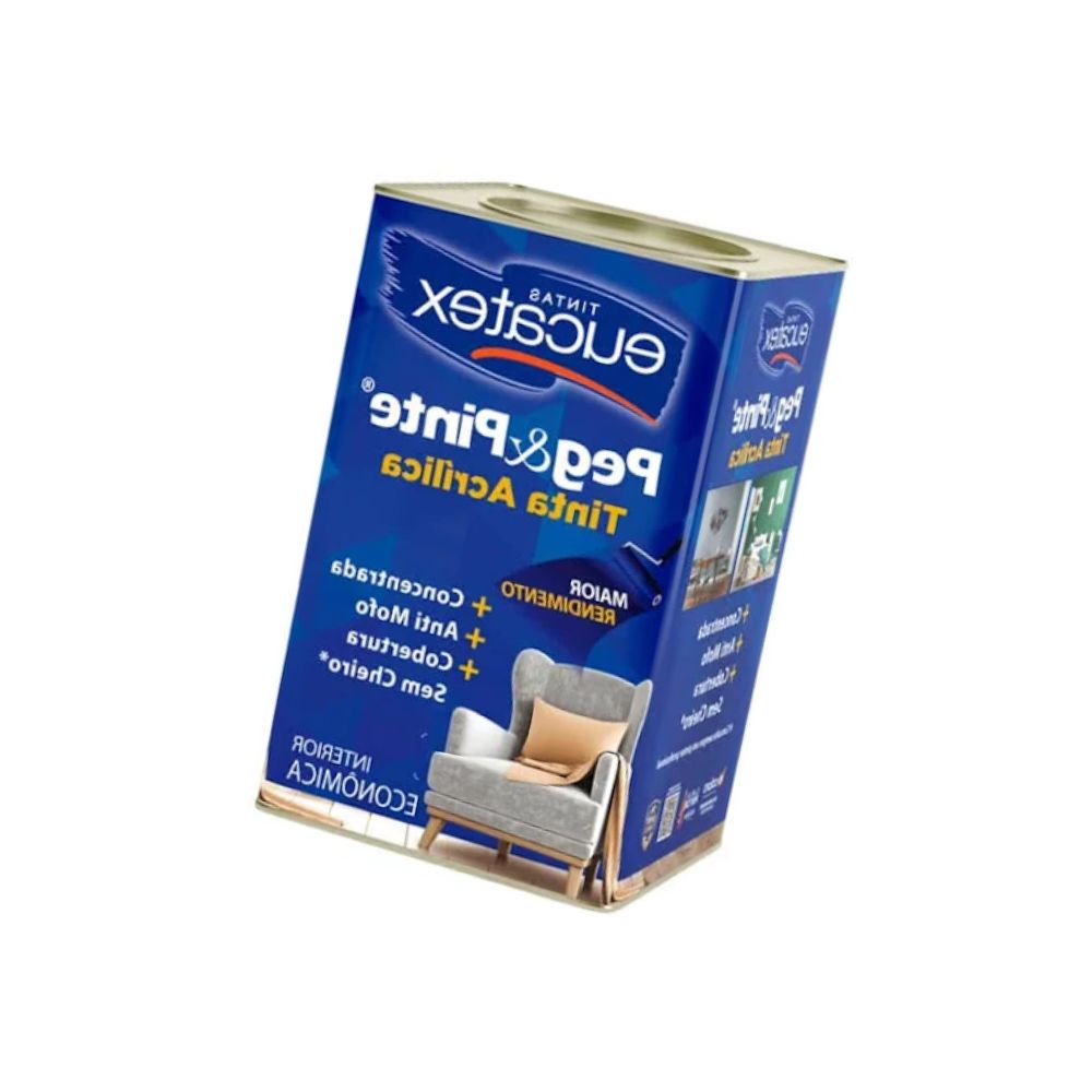 Garanta já a Tinta Acrílica Eucatex Peg&Pinte Branco Neve Fosco 18L e transforme seus ambientes com praticidade, qualidade e ótimo acabamento!