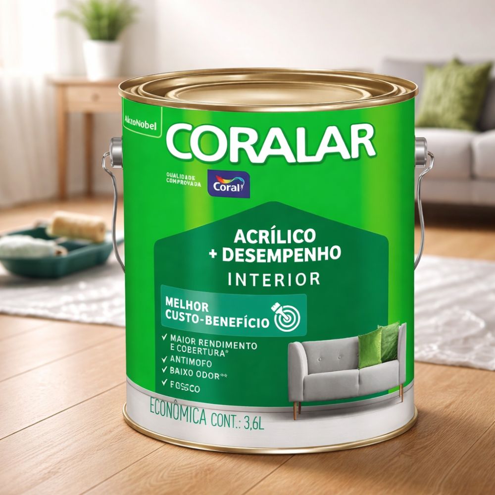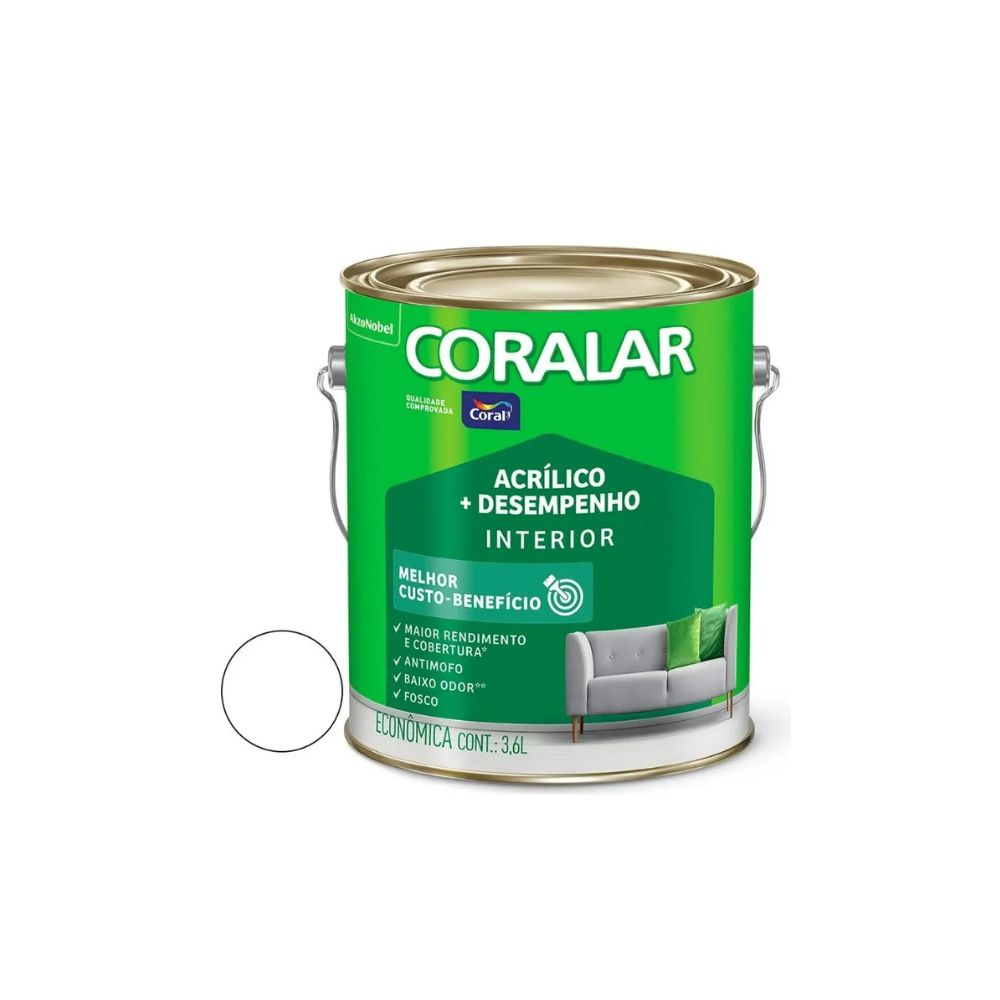 Garanta já a Tinta Coral Coralar Econômica Acrílica Fosca Branco 3,6L e dê um acabamento impecável e econômico aos seus ambientes!