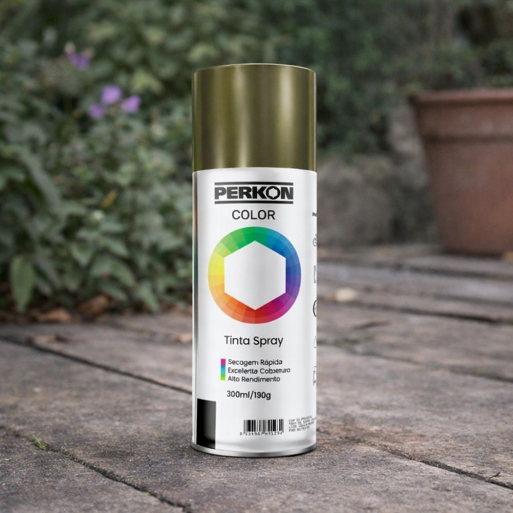 Garanta já sua Tinta Spray Perkon Metálica Ouro e conquiste acabamentos elegantes com praticidade e qualidade profissional!