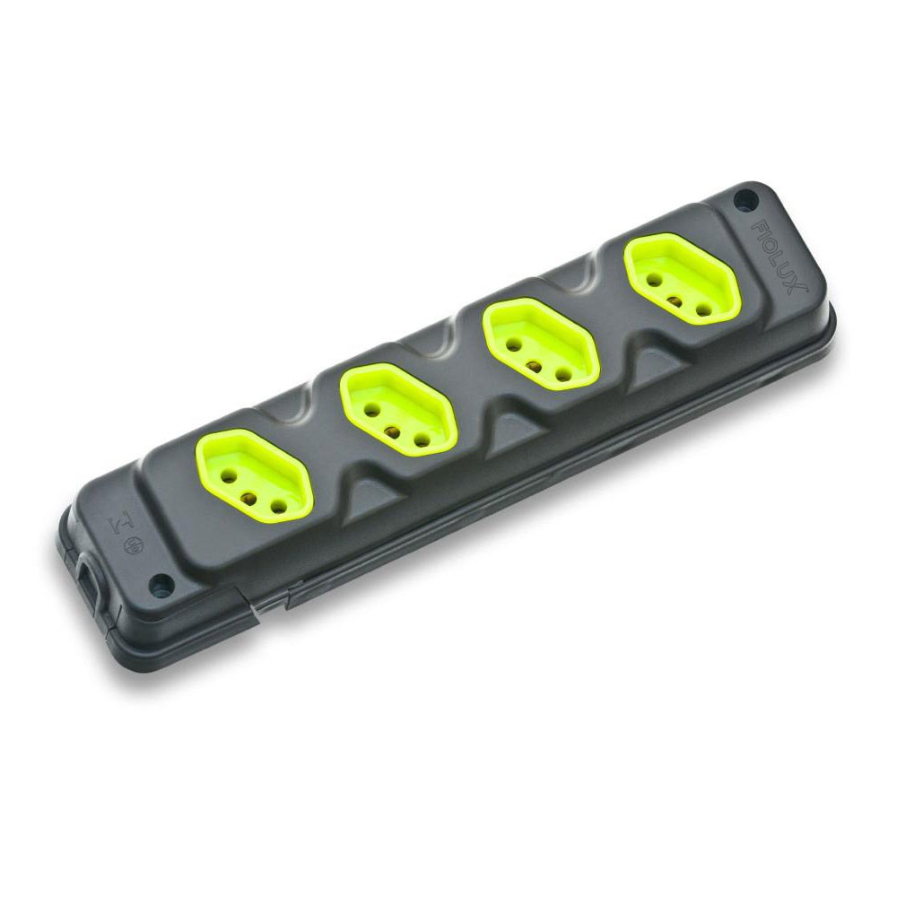 Tomada Barra Fiolux Quadrupla 20A 2 Polos+Terra Preta/Verde 28310400117