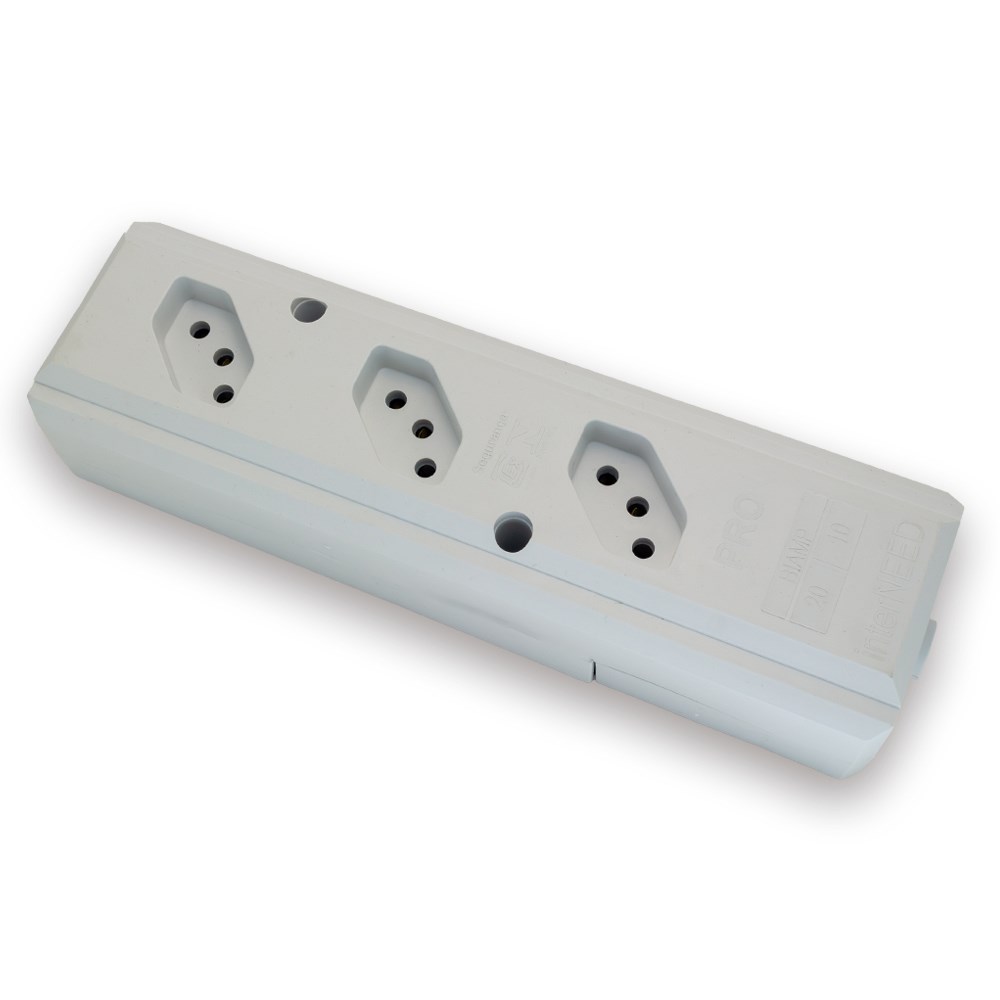 Tomada Barra Interneed PRO45° Tripla 10/20A 2 Polos +Terra Branca 074168