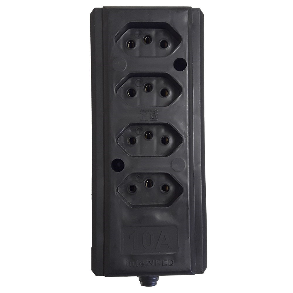 Tomada Barra Interneed Quadrupla 10A 2 Polos +Terra Preta 66262