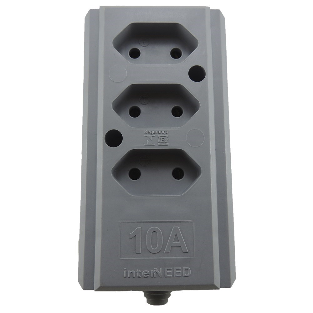 Tomada Barra Interneed Tripla 10A 2 Polos Cinza 69096