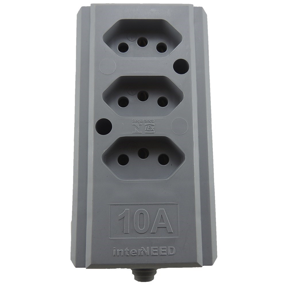 Tomada Barra Interneed Tripla 10A 2 Polos +Terra Cinza 66231
