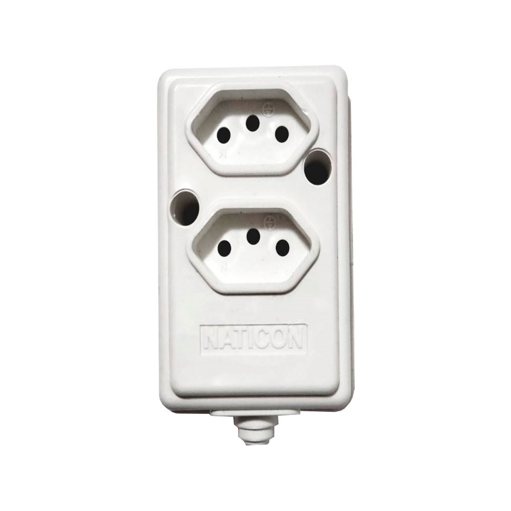 Tomada Barra Naticon - (A) Dupla 10A 2 Polos + Terra Branca - 573