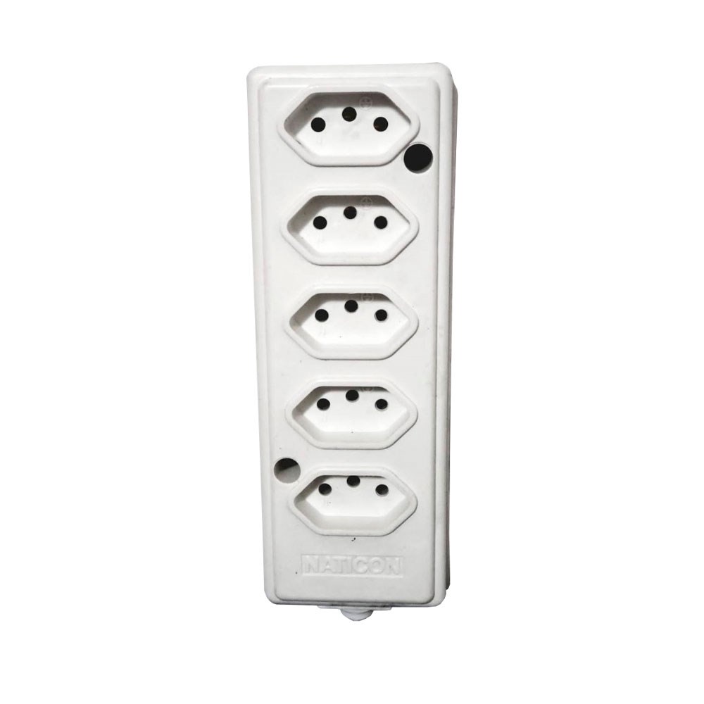 Tomada Barra Naticon Quintupla 10A 2 Polos +Terra Branca 576