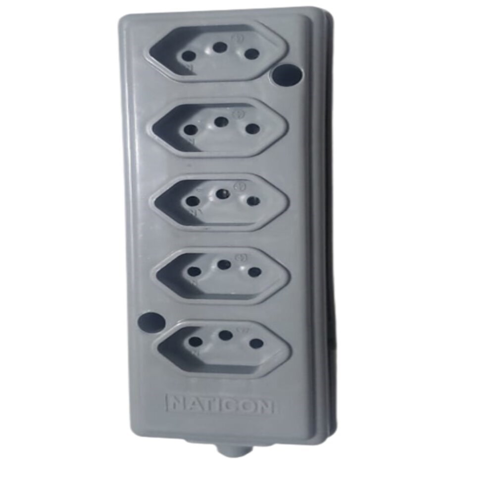 Tomada Barra Naticon Quintupla 10A 2 Polos +Terra Cinza 609