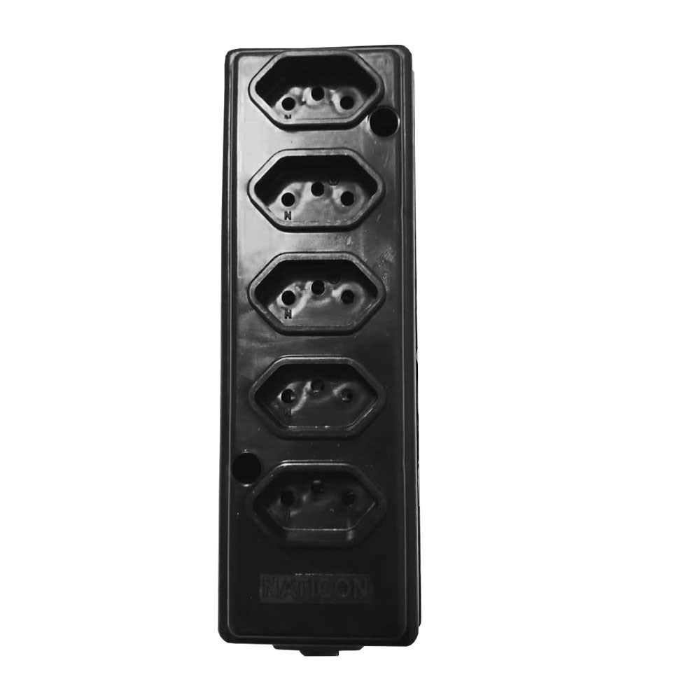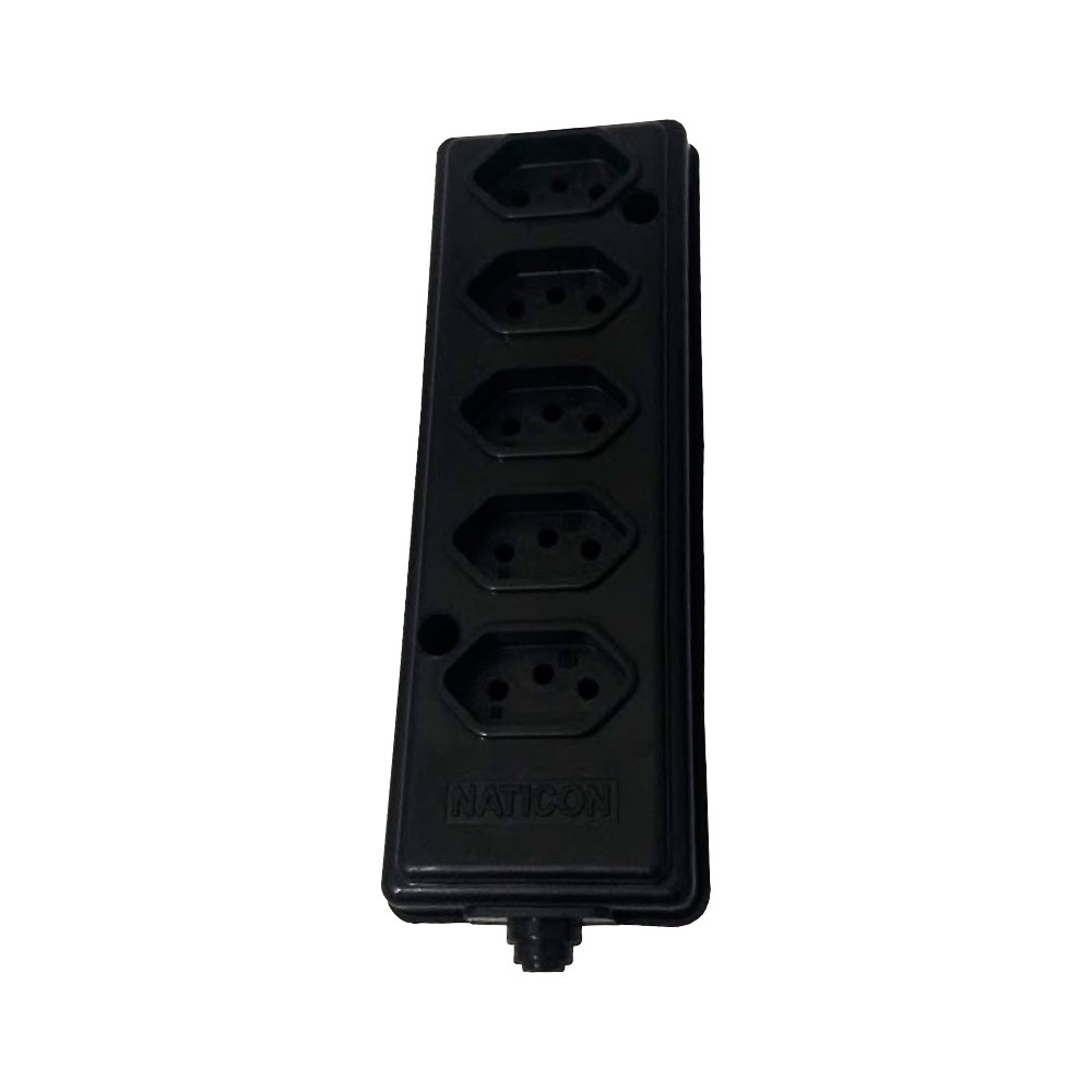 Tomada Barra Naticon Quintupla 10A 2 Polos +Terra Preta 571