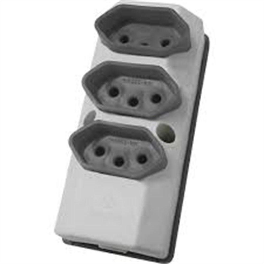Tomada Barra Perlex Tripla 2 Polos +Terra 10A Cinza 2100/2