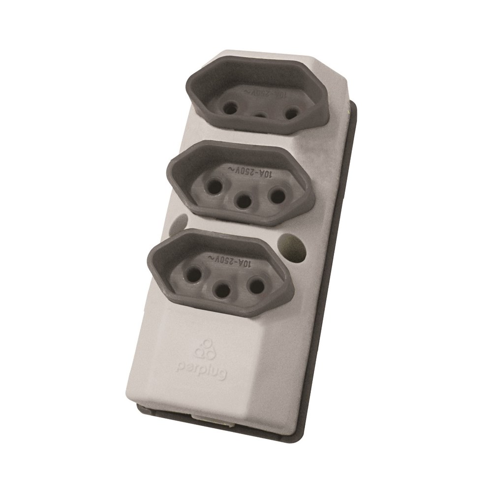 Tomada Barra Perlex Tripla 2 Polos + Terra - 20A Cinza - 2120/2