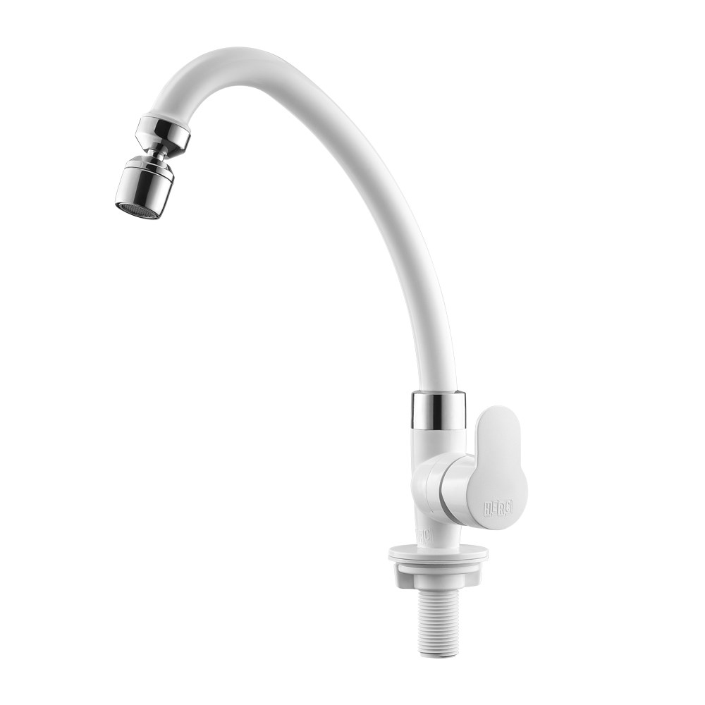 Torneira ABS Bica Móvel Mesa Herc Tivoli Alavanca com Arejador Articulável Branca/Cromada Pastilha Cerâmica 530