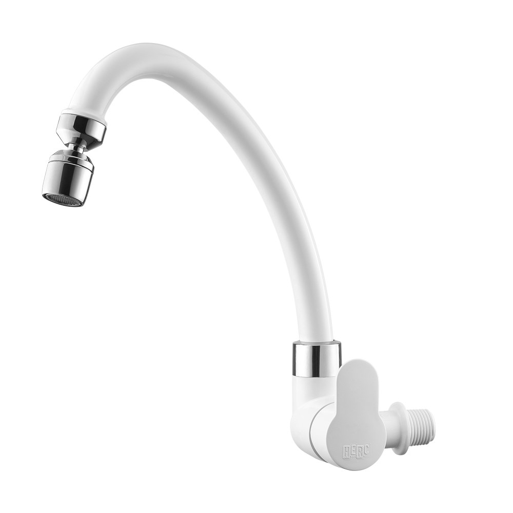 Torneira ABS Bica Móvel Parede Herc Tivoli Alavanca com Arejador Articulável Branca/Cromada Pastilha Cerâmica