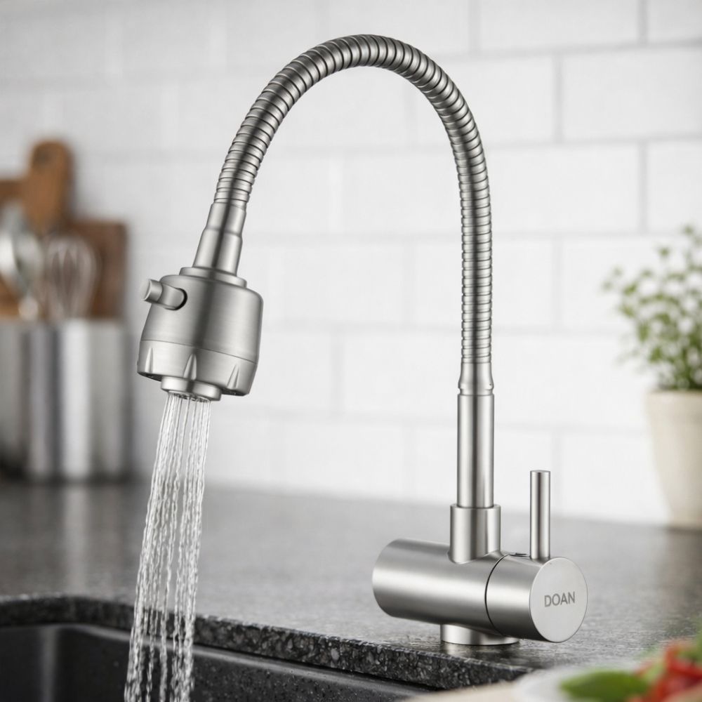 A Torneira Gourmet de Inox Giratória Parede Longa DOAN foi desenvolvida para oferecer funcionalidade superior e visual moderno em cozinhas e áreas gourmet. Fabricada em aço inox de alta qualidade, garante resistência, durabilidade e ótimo desempenho no uso diário. Seu bico longo com movimento giratório amplia o alcance da água, facilitando a limpeza de pias maiores, cubas duplas e utensílios volumosos. Indicada para ambientes residenciais e comerciais, une praticidade, robustez e design contemporâneo.