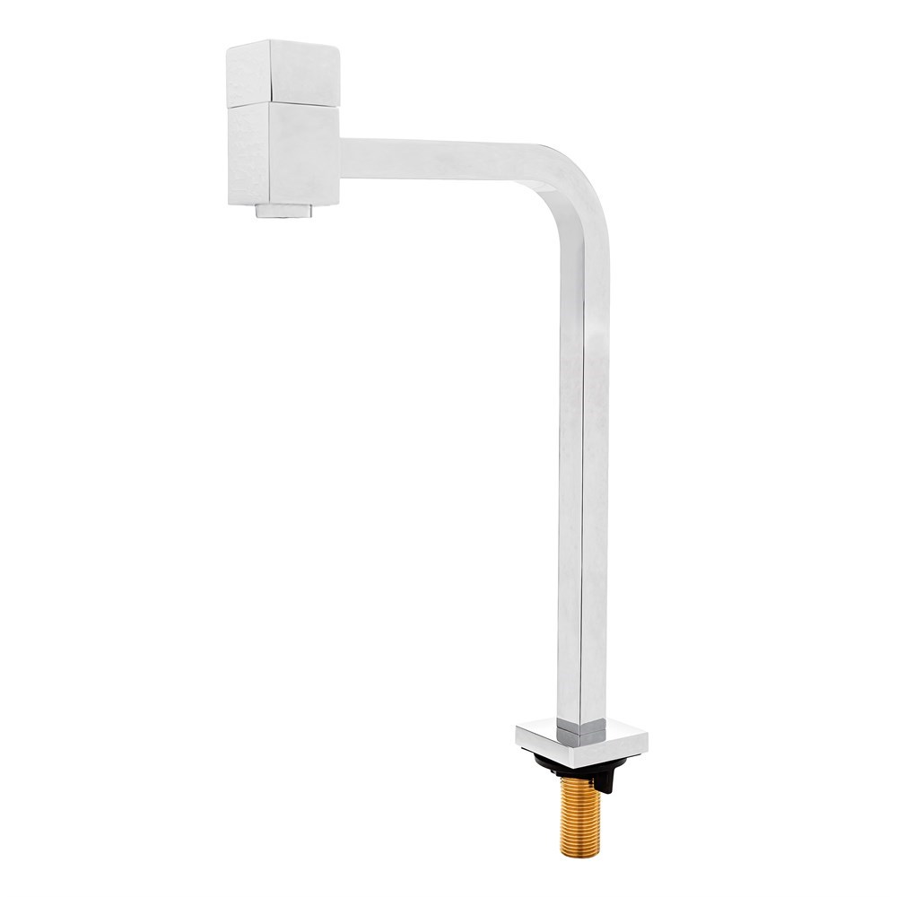 - Design moderno com bica baixa e formato quadrado de 90°, proporcionando praticidade no uso.