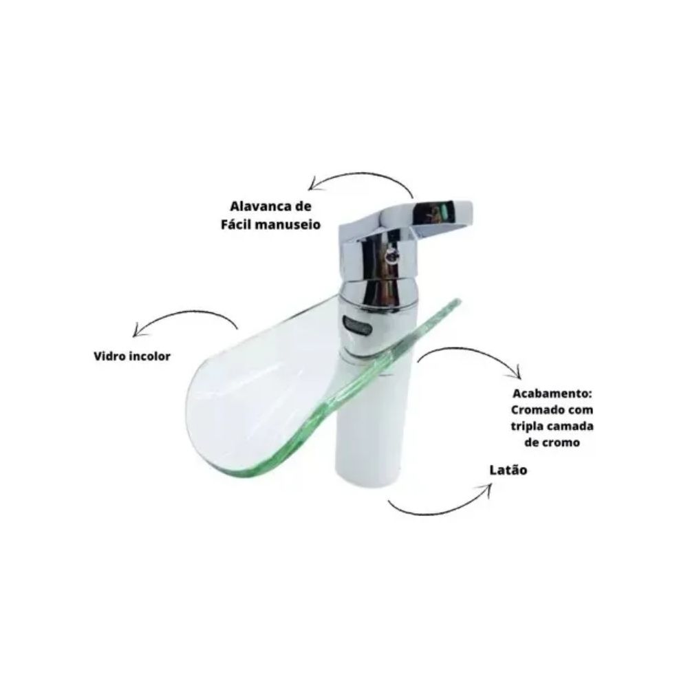 Torneira Monocomando Lavatório Brazhu Baixo Calha Vidro 513
